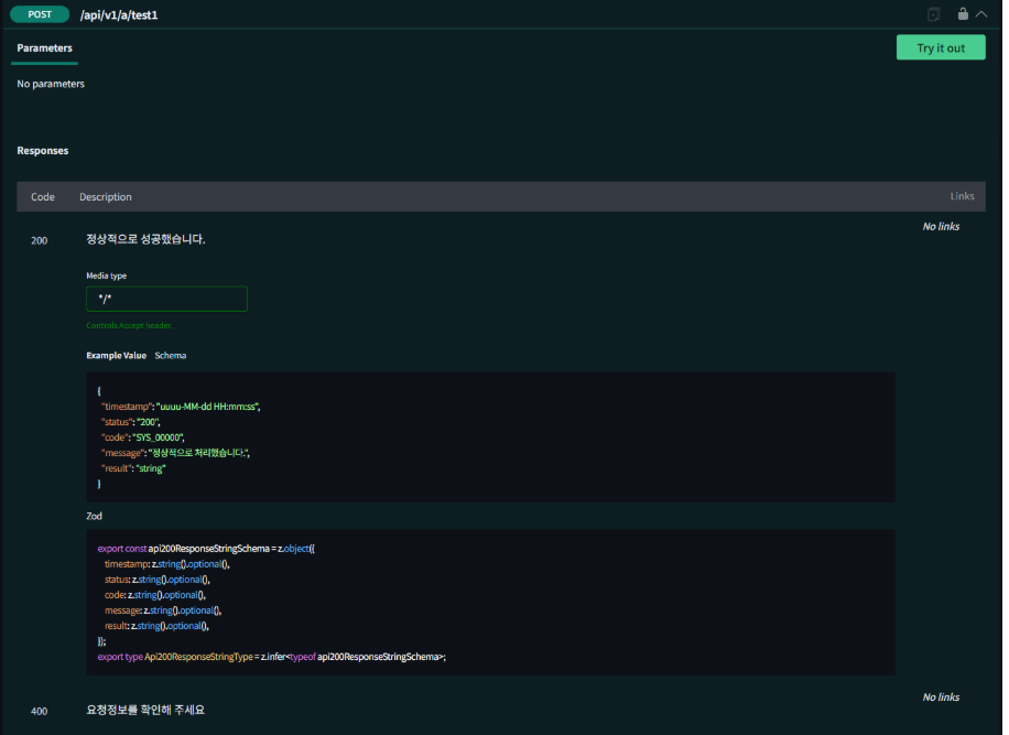 최근 개인 프로젝트로 swaggerToZod라는 작은 도구를 통해 Swagger 자동화 Zod 자동화 문서 생성했습니다.