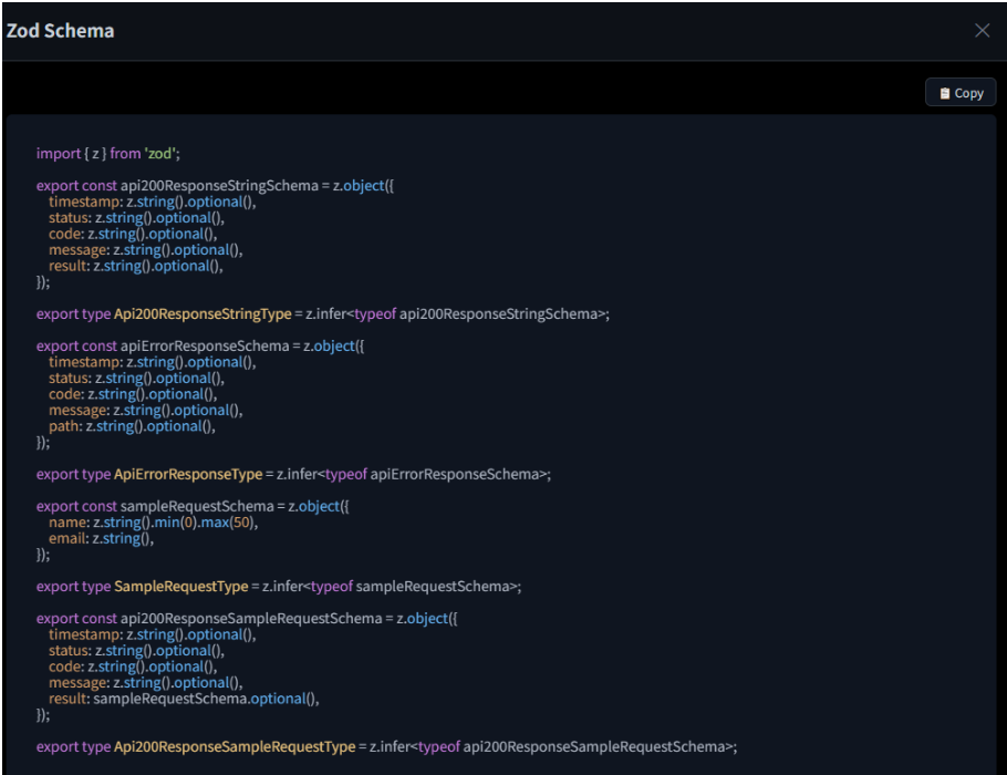 변환된 정보로 Swagger Zod 정보 확인 할 수 있도록 Zod Schema 팝업생성했습니다.
