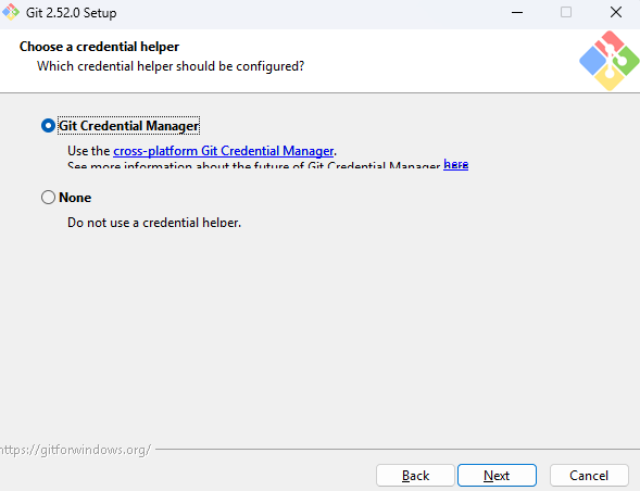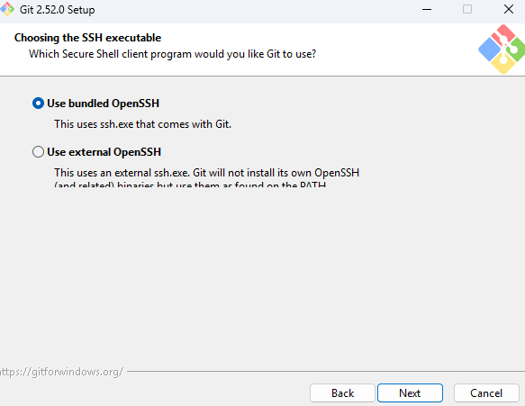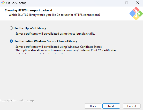 Git이 원격 저장소와 통신할 때 사용할 HTTPS 라이브러리를 고르는 단계입니다.