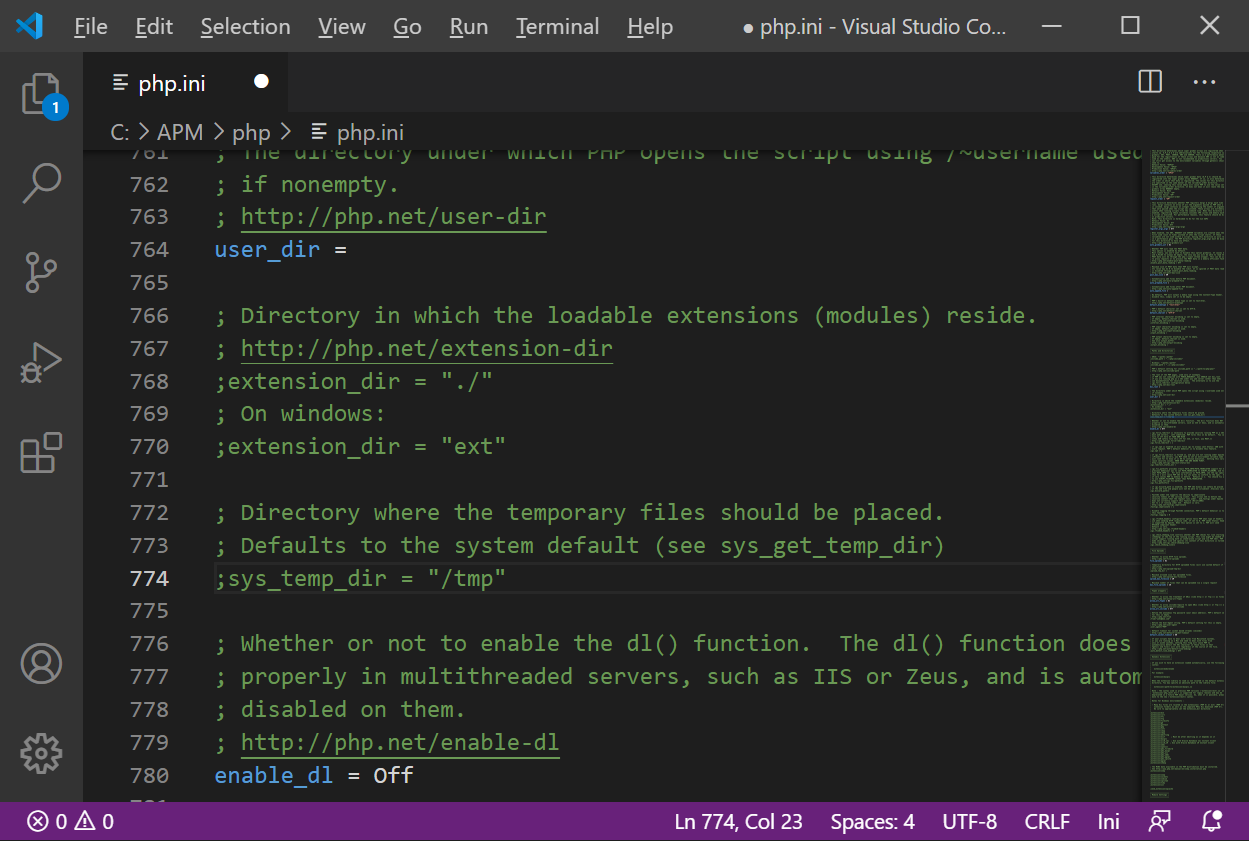 그런 다음 php.ini 파일을 열어 수정하도록 하겠습니다.