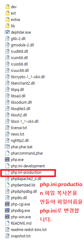 php.ini.production파일의 복사본을 만들어 이름을 php.ini로 수정합니다.