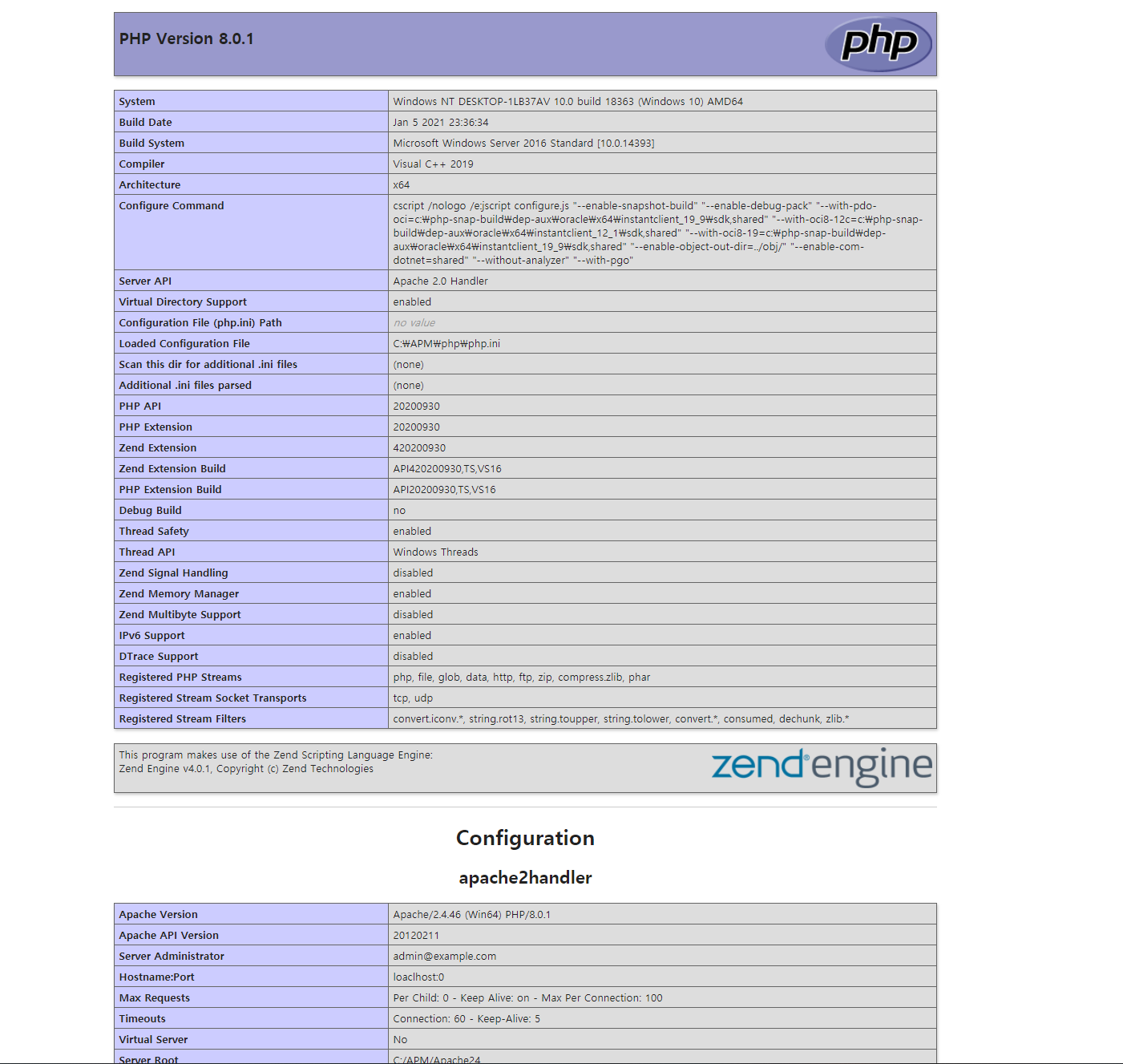 php 정보를 정상적으로 확인이 되었다면 php가 완료된 것입니다.