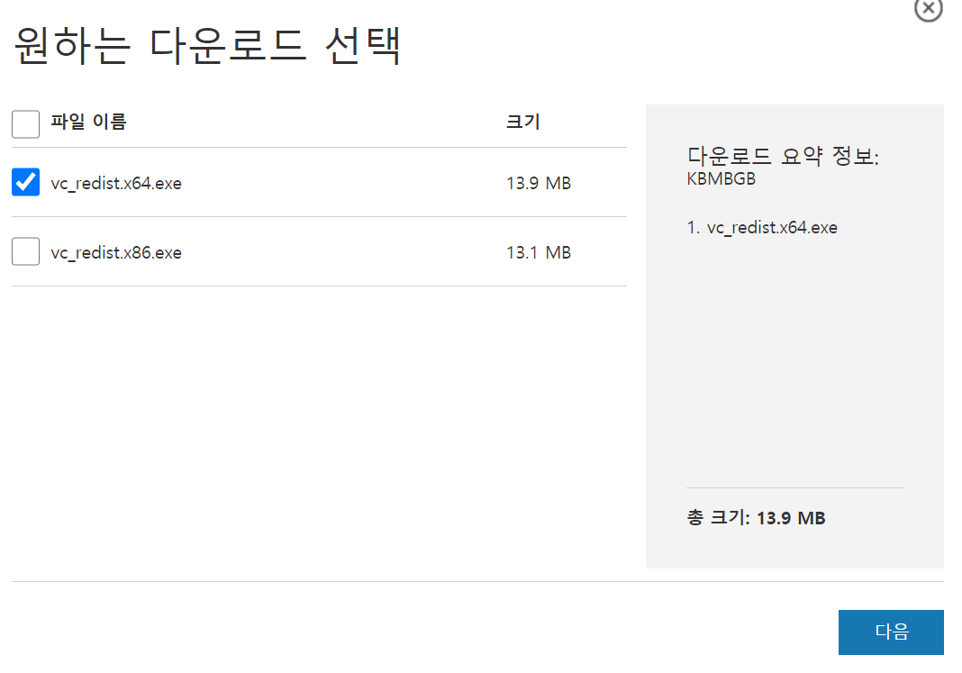 Visual Studio 2015용 Visual C++ 재배포 가능 패키지 다운로드 및 설치