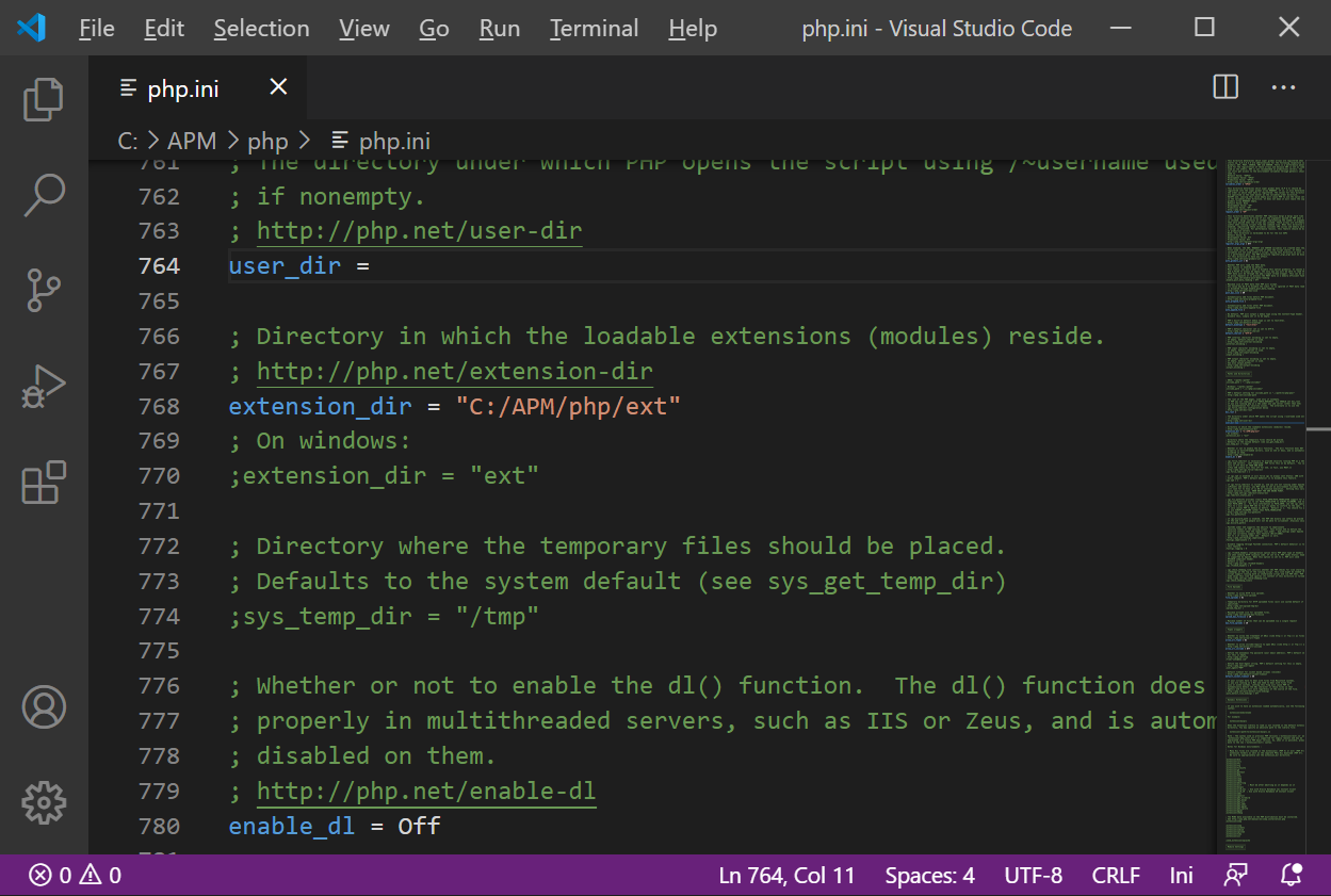 ;extension_dir = "./" -> extension_dir = "C:/APM/php/ext"
