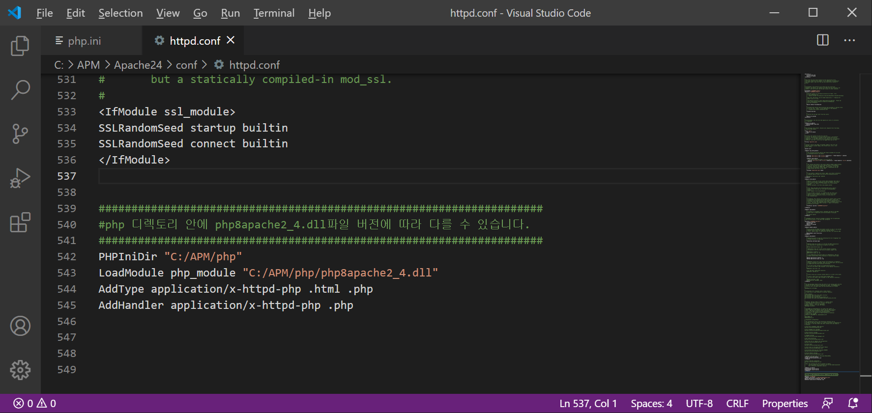 LoadModule php_module "C:/APM/php/php8apache2_4.dll"
