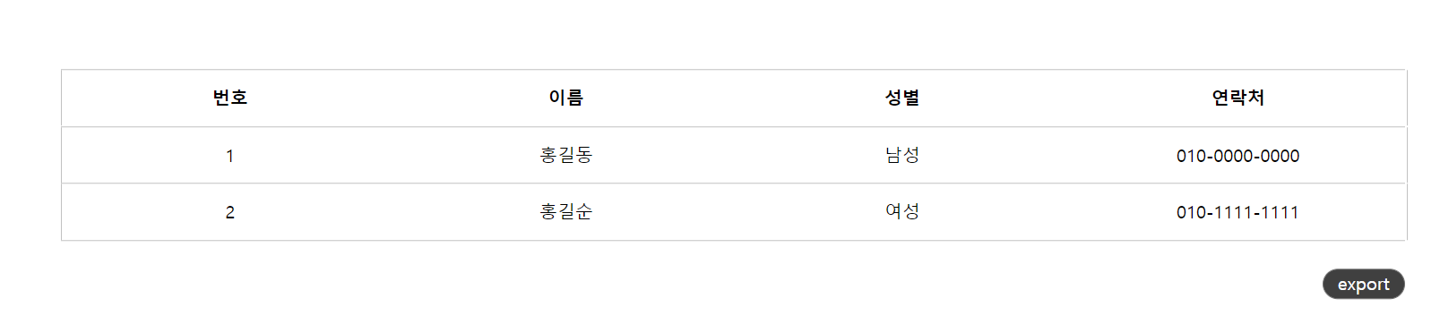 위 이미지와 같은 웹이 있을 경우 export 버튼을 csv파일로 내보내도록하자.