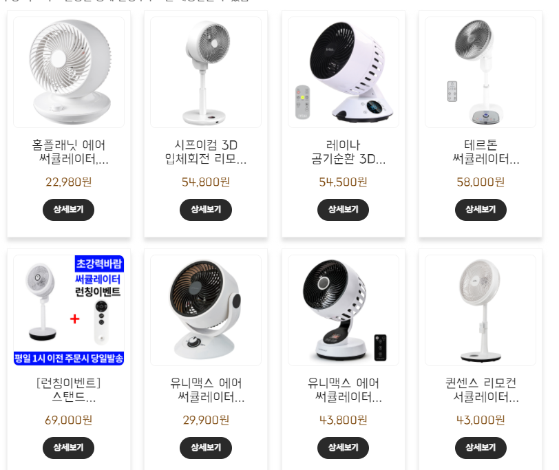 해당 상품은 쿠팡에서 뽑은 서큘레이터 상위 10개입니다.