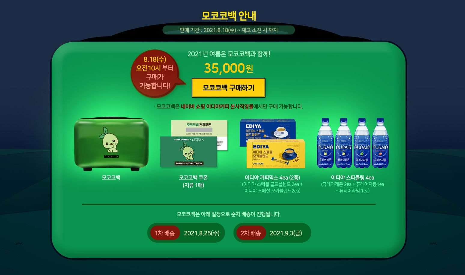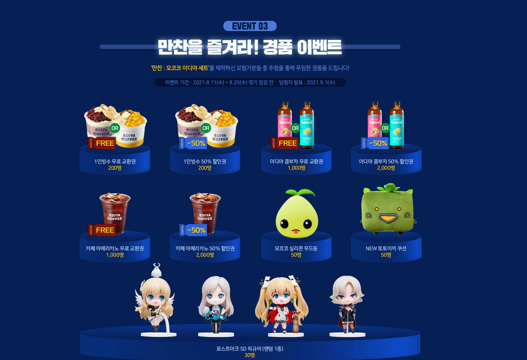 이벤트 기간 : 2021.08.11(수) ~2021.08.25(수) 정기점검 전 당첨자 발표 2021.09.01(수)