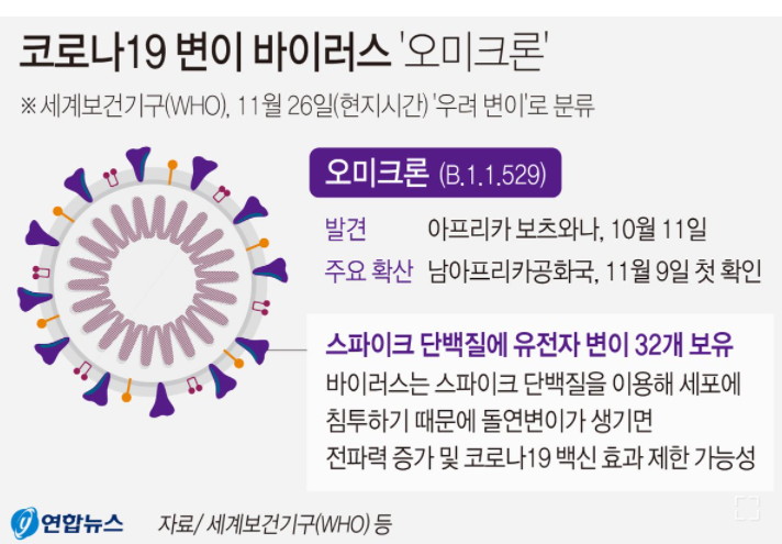 세계보건기구(WHO)는 남아프리카에서 보고된 코로나19 변이 바이러스를 우려 변이로 분류 했으며,