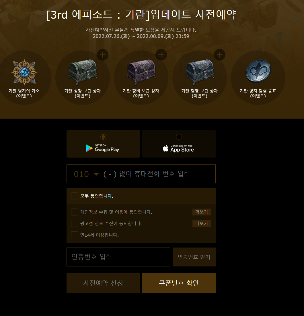 해당 게시글을 통해 사전예약 방법 및 보상에 대한 정보를 확인하세요~