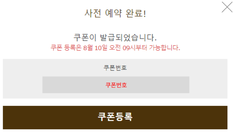 해당 쿠폰번호는 쿠폰등록을 통해 사용자에게 전달 됩니다.