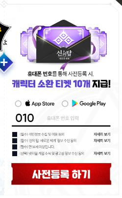 - 7월 26일(수) 정식 오픈 시 휴대폰 번호 인증까지 완료해야 모든 사전등록 보상을 받을 수 있습니다.