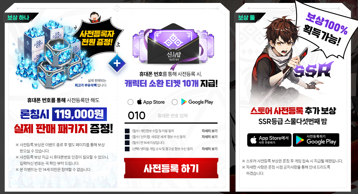 사전등록 보상 지급 시 휴대폰번호 인증이 필요할 수 있으니, 입력하신 번호는 꼭 확인 부탁 드립니다.